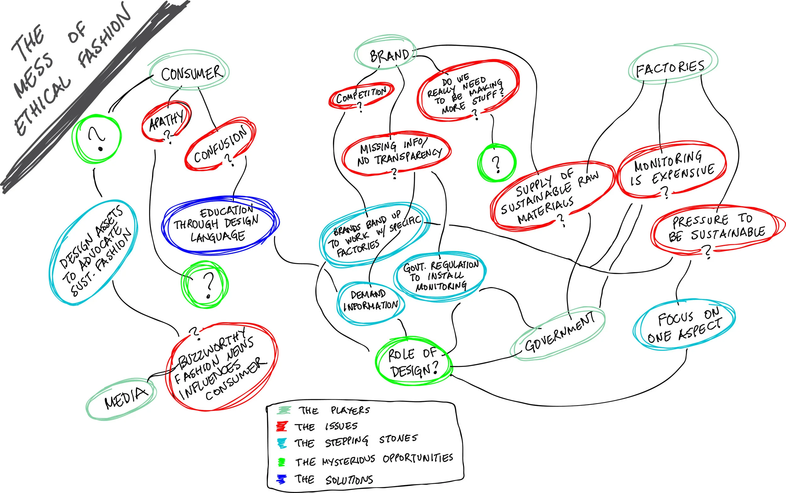 Gupta was really intervening in a large and complex system; this realization came about as she began speaking with various experts in the field to understand the many issues, challenges and language of sustainability. After every expert provided her a different definition of sustainability, and their opinion on the most urgent challenge, Gupta began to see the fashion production and sustainability as a complex system of many stakeholders -- and decided she must define sustainability herself.