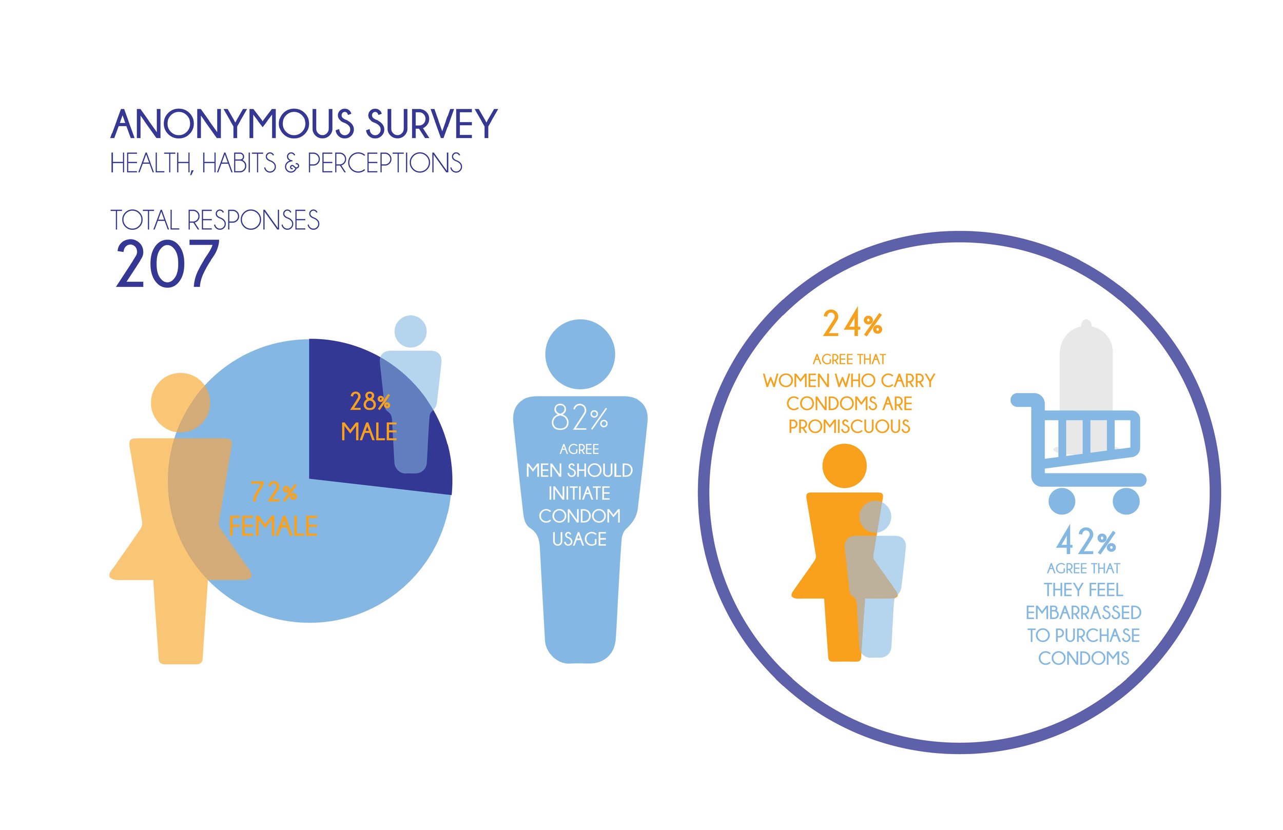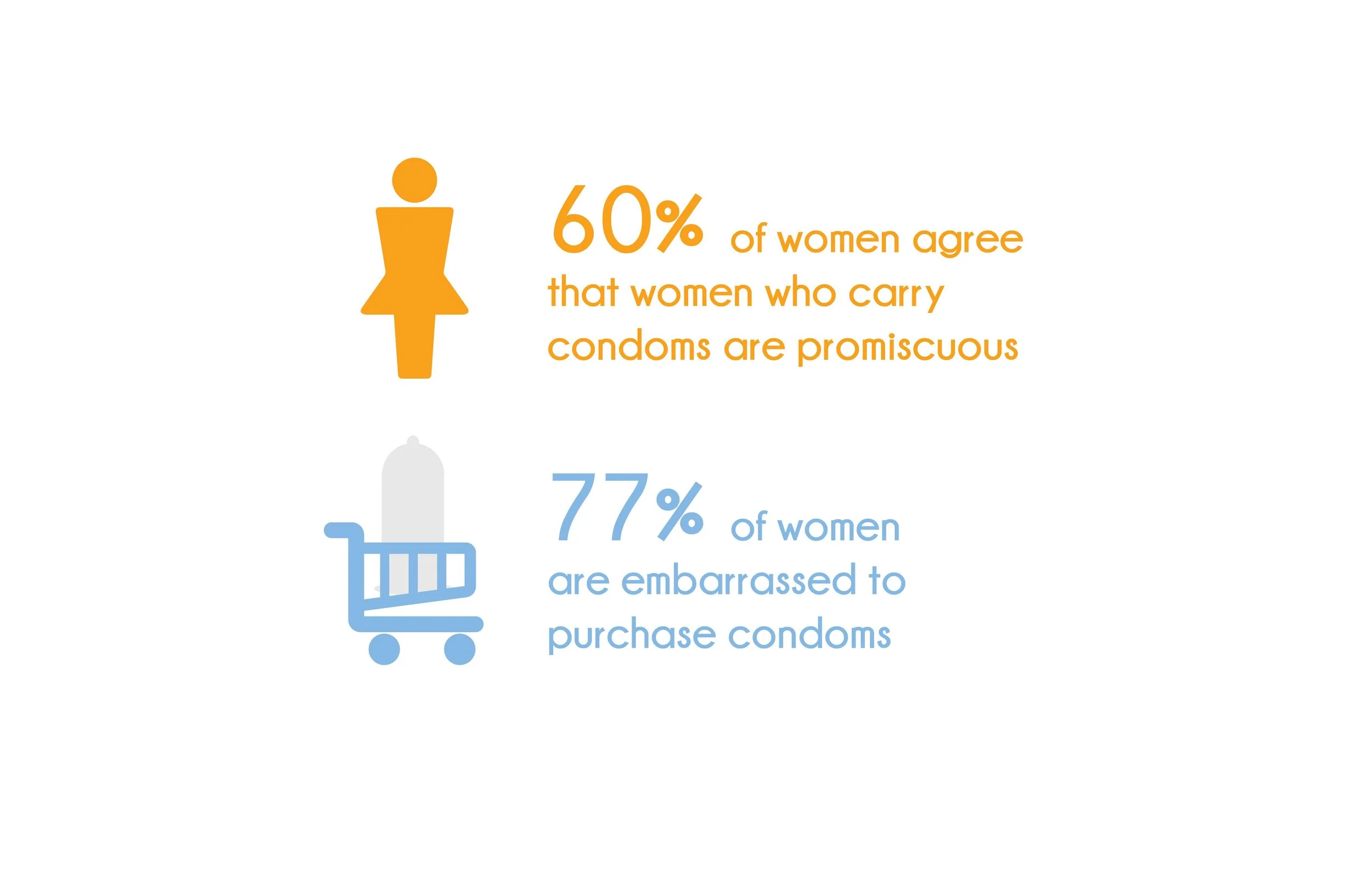 In collaboration with the Center for Disease Control (CDC), we addressed behaviors that support gender inequality in sexual health. Sexual behaviors can easily be inhibited by stigma and double standards. Research insights showed that women are largely embarrassed to purchase condoms, and that some women judge other women who carry condoms to be promiscuous.