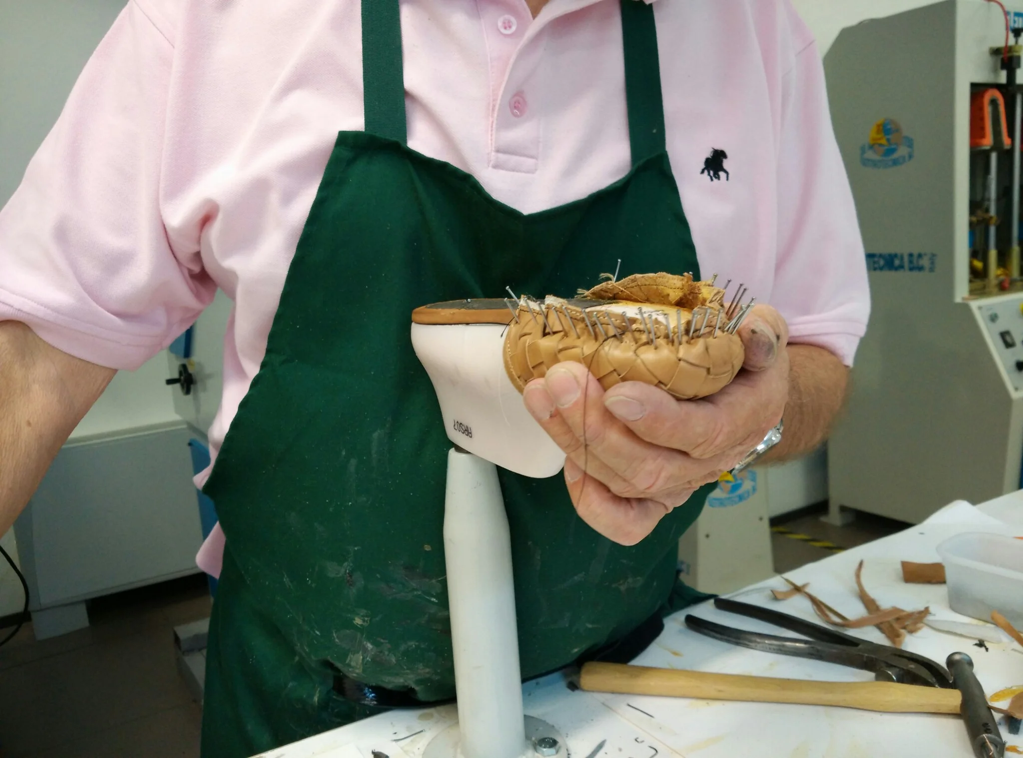 Handlasting requires a lot of strength to pull on the upper and nail it in, so that the upper can take shape.